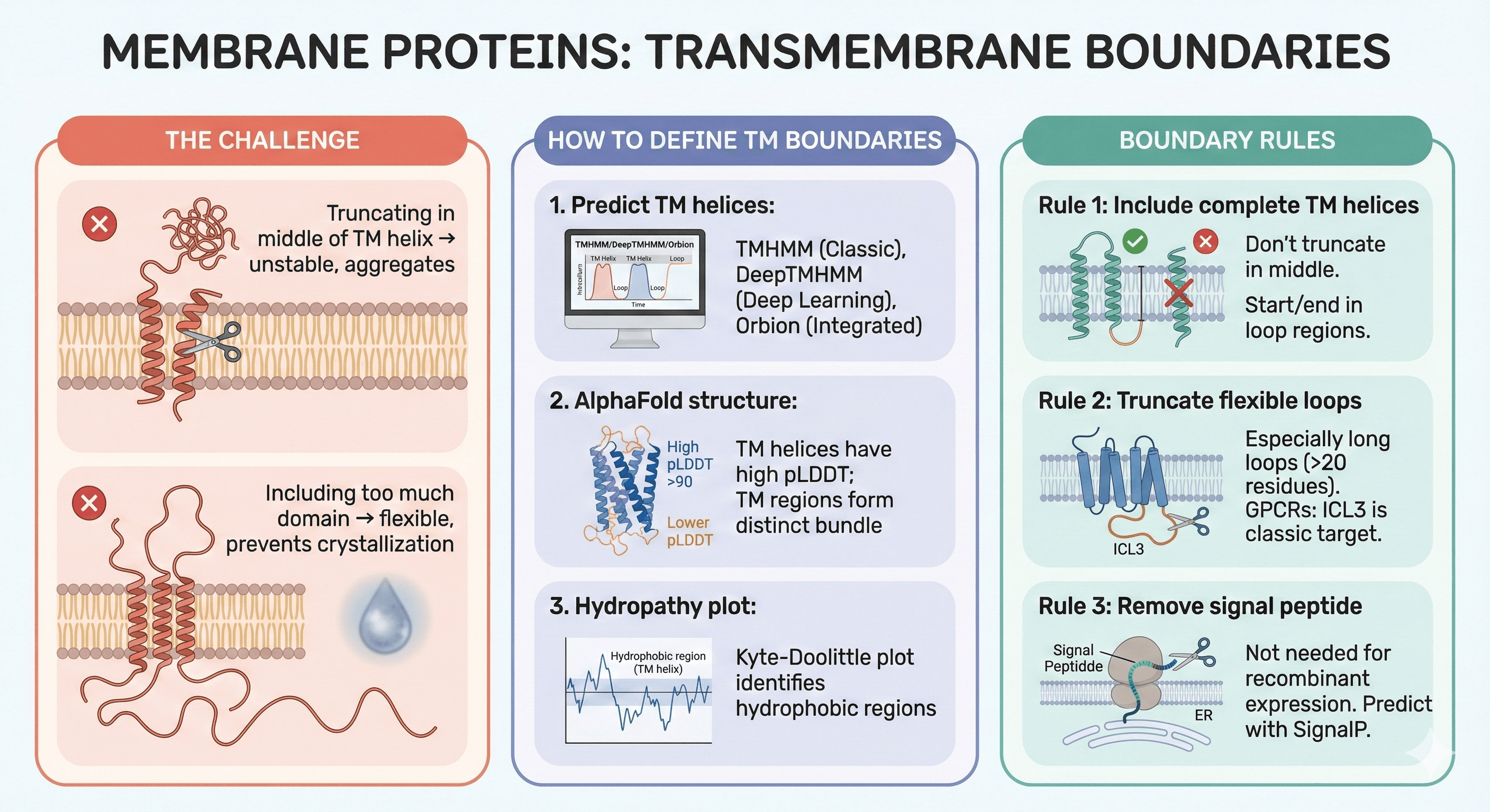 Including too much intracellular/extracellular domain → flexible, prevents crystallization