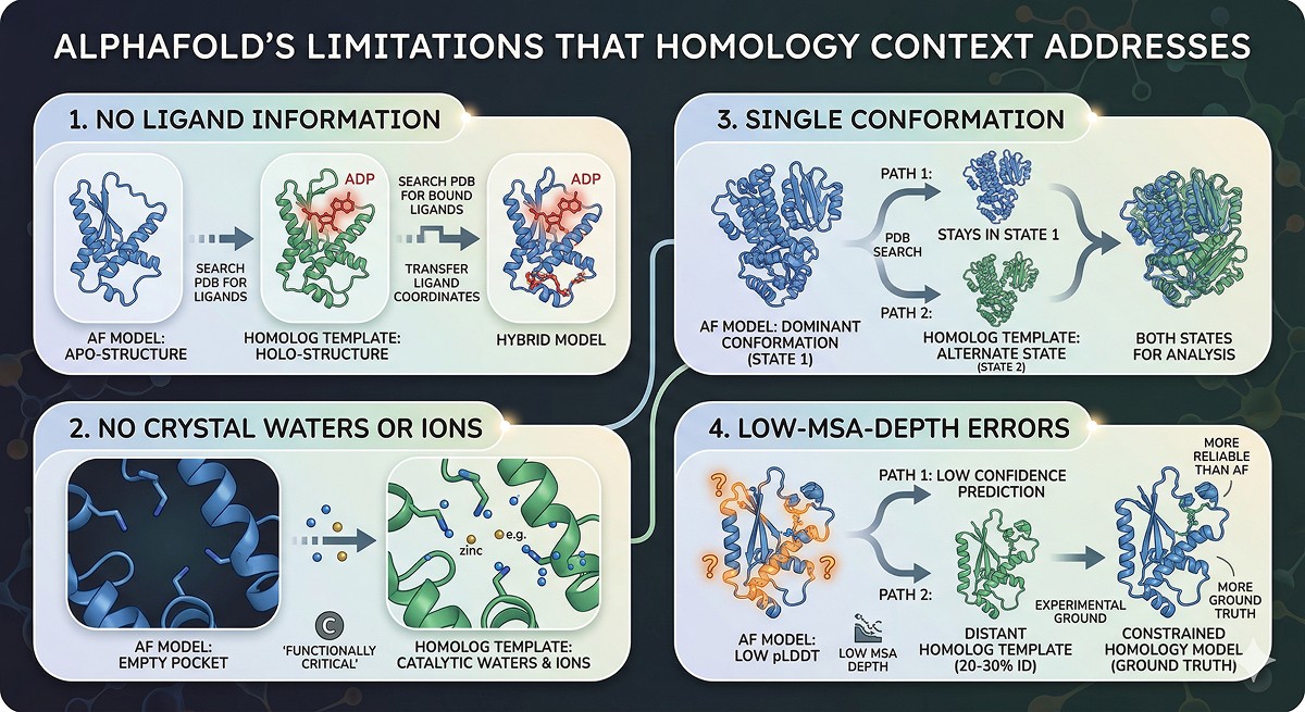 AlphaFold's Limitations That Homology Context Addresses