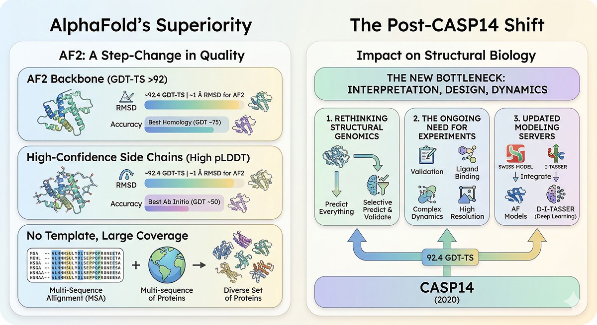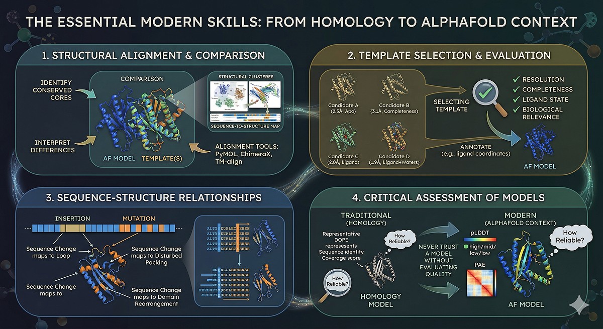 The core message: AlphaFold made structure prediction routine. It did not make structural biology routine. Understanding proteins still requires the comparative, contextual thinking that was always at the heart of homology-based approaches—it just starts from a much better structural model now.