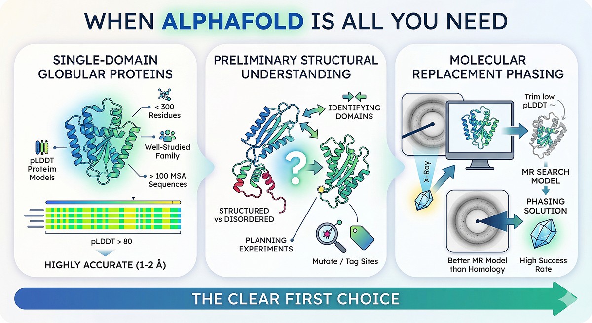 The real skill is knowing when AlphaFold's confidence metrics signal problems and when template-based methods or experimental structures provide critical information AlphaFold misses