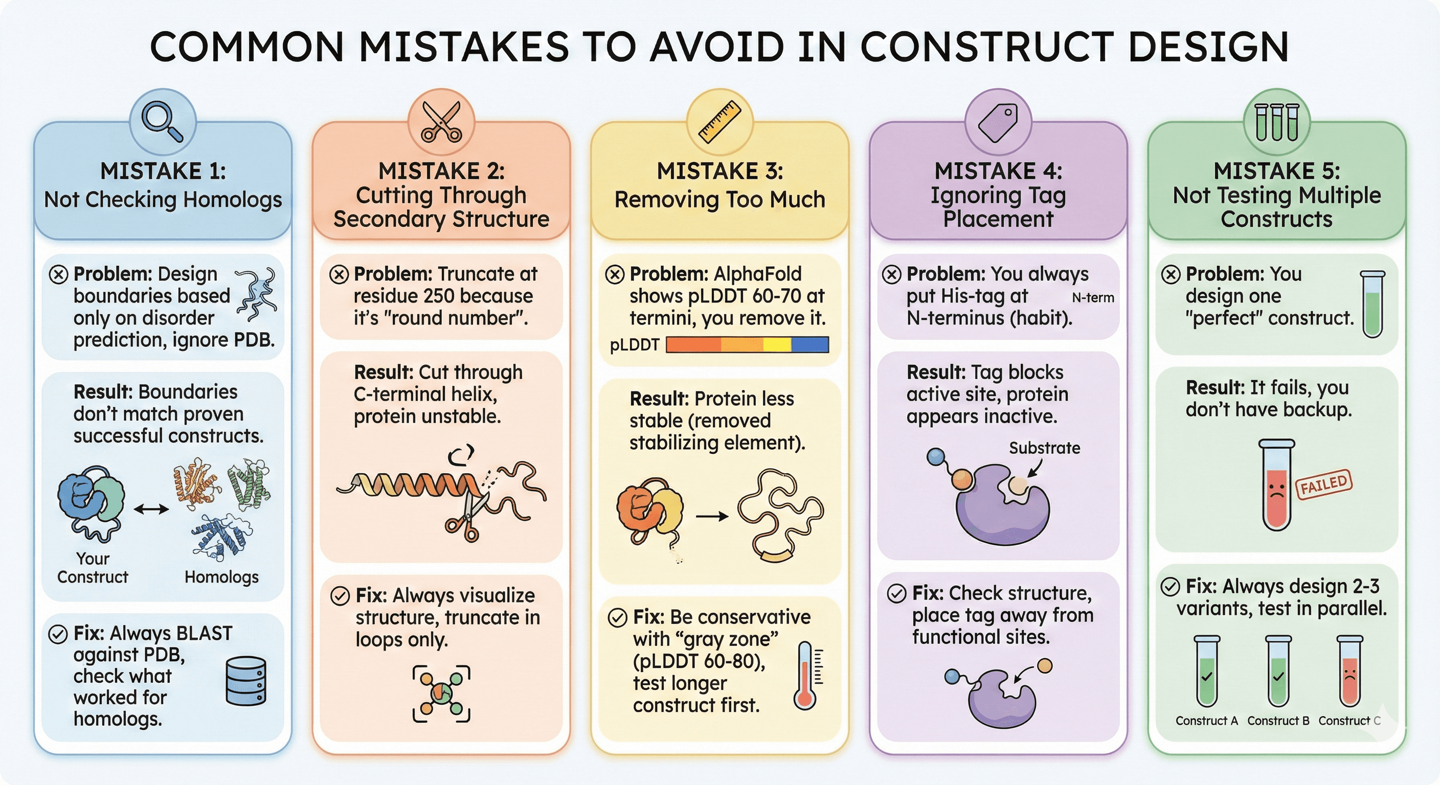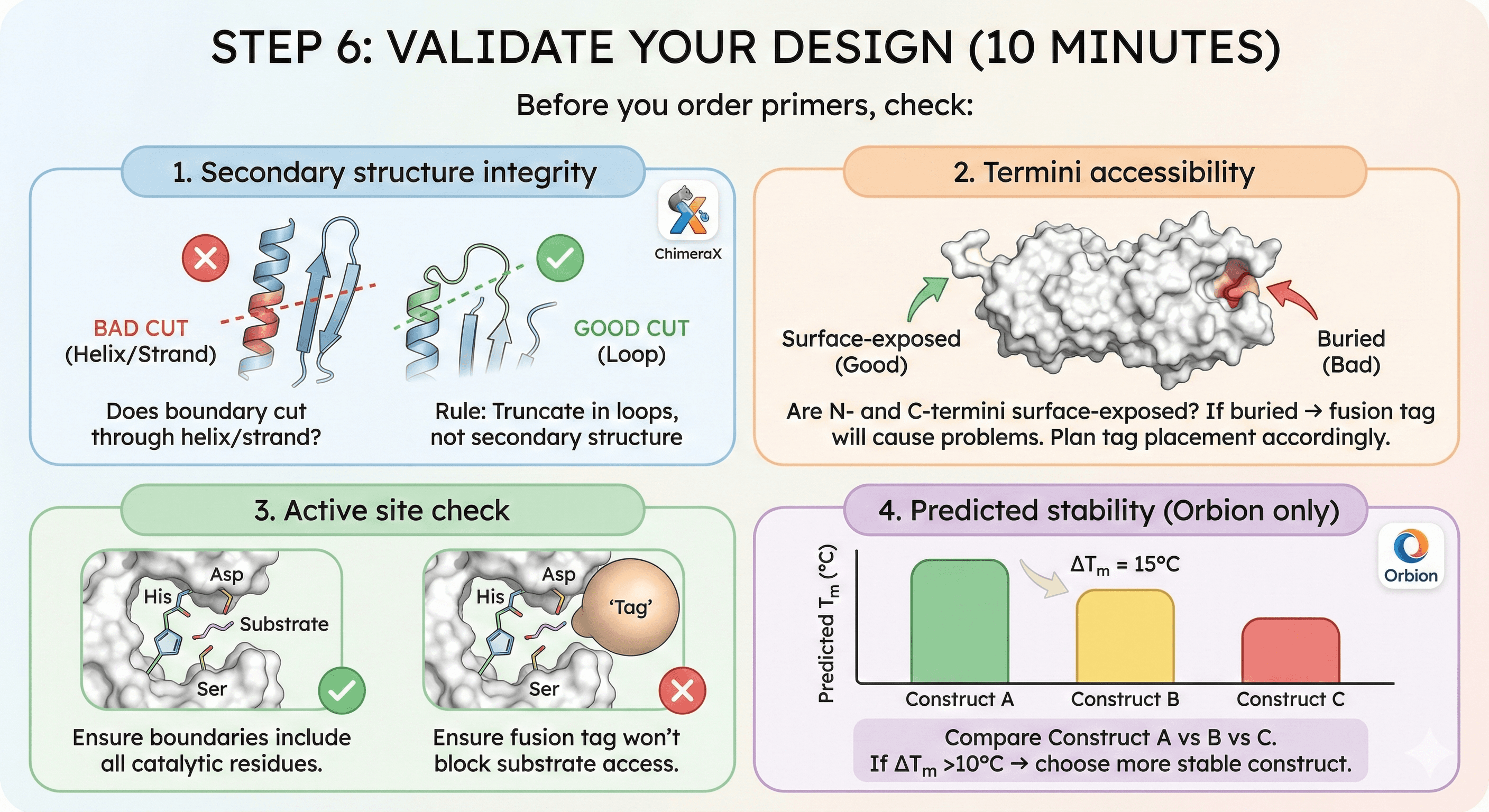 Validate before cloning (check secondary structure, termini)