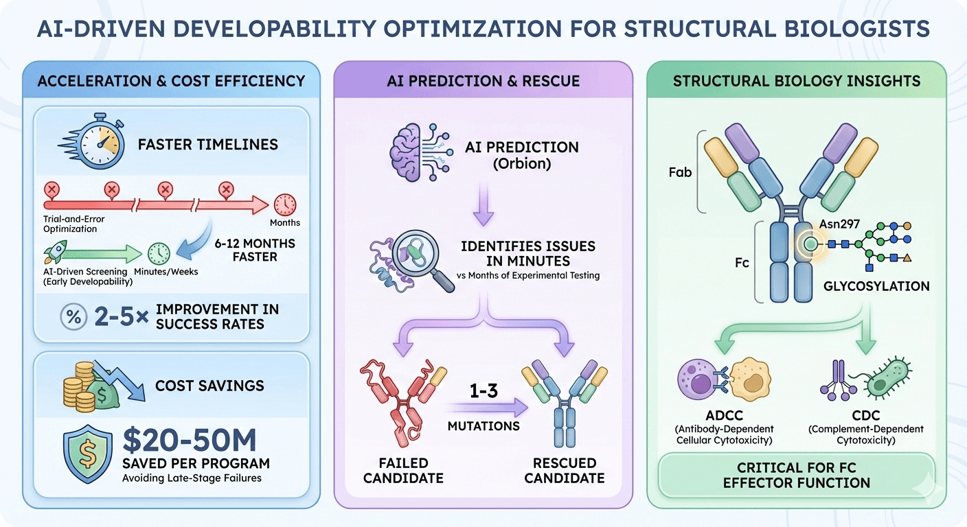Antibody developability is engineerable. With modern AI tools, you can predict liabilities in minutes and design fixes in weeks—not discover problems in Phase II after spending $100M.