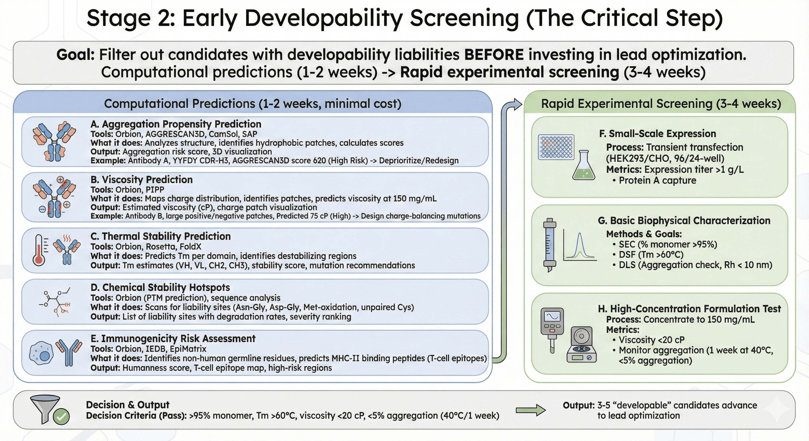 Goal: Filter out candidates with developability liabilities BEFORE investing in lead optimization