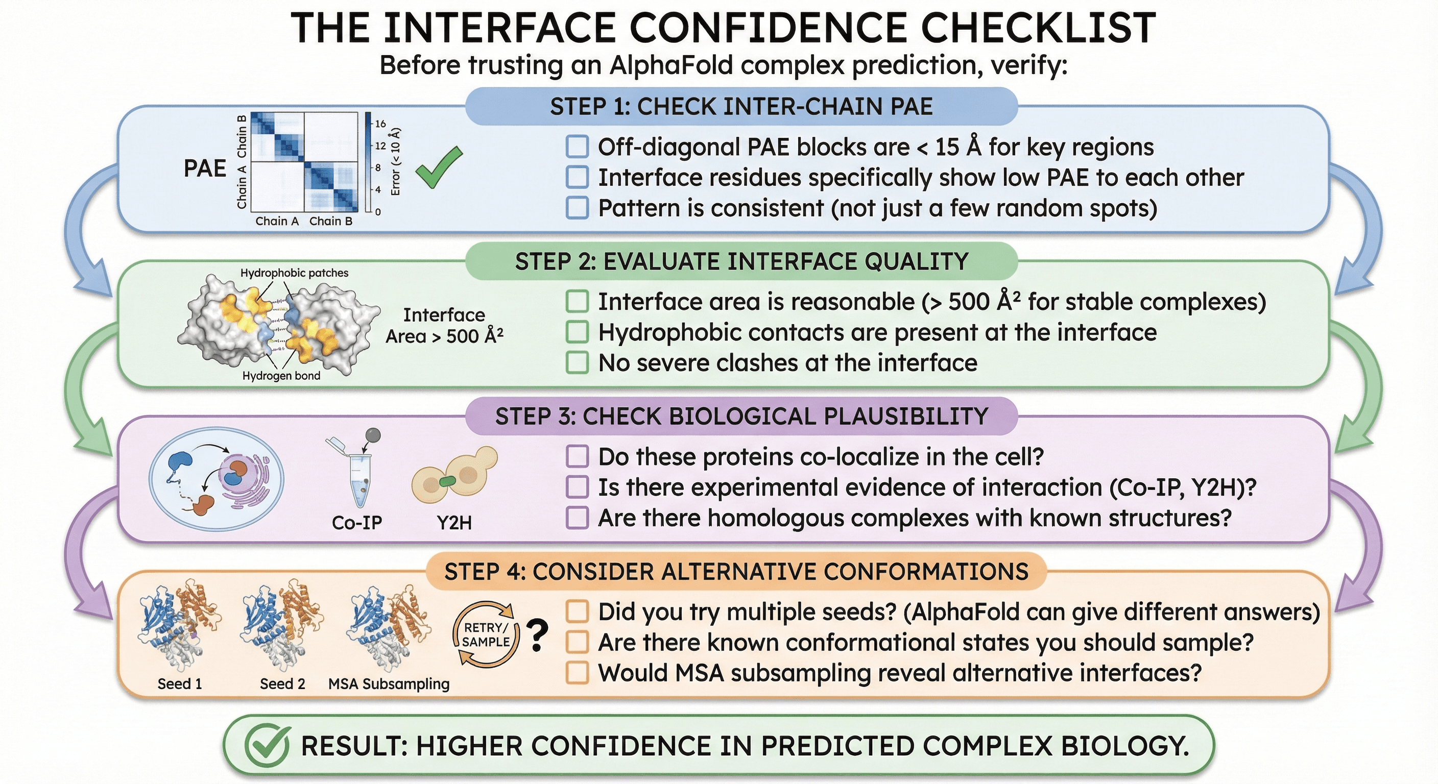 The goal is to move from "here's a complex structure" to "here's what you can actually trust about this interaction"—before you design experiments based on potentially unreliable predictions.