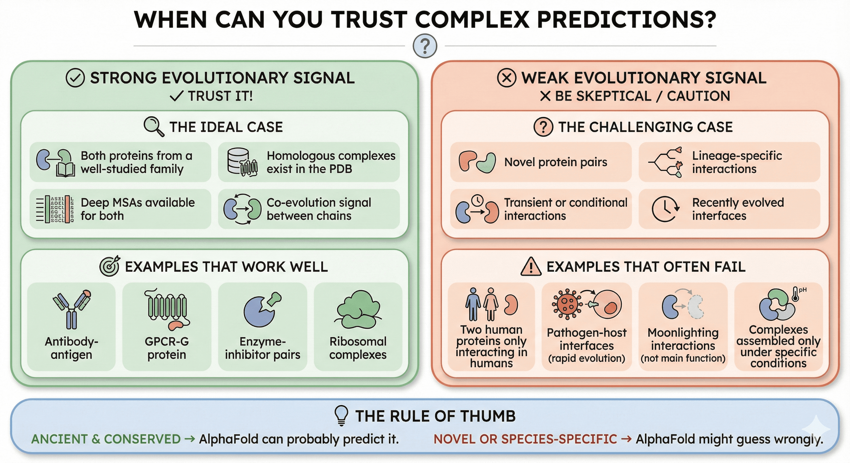 Novel or species-specific → AlphaFold might guess wrongly