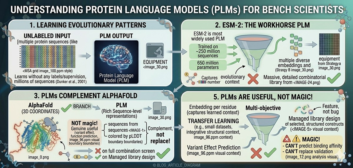 Your colleague mentions that their new prediction tool uses "ESM-2 embeddings." Your PI asks whether you should use "protein language models" for variant analysis. A preprint claims that "masked language modeling" predicts mutation effects better than Rosetta. You nod along in the lab meeting, but privately you have no idea what any of this actually means, whether it's hype, or whether you should care.