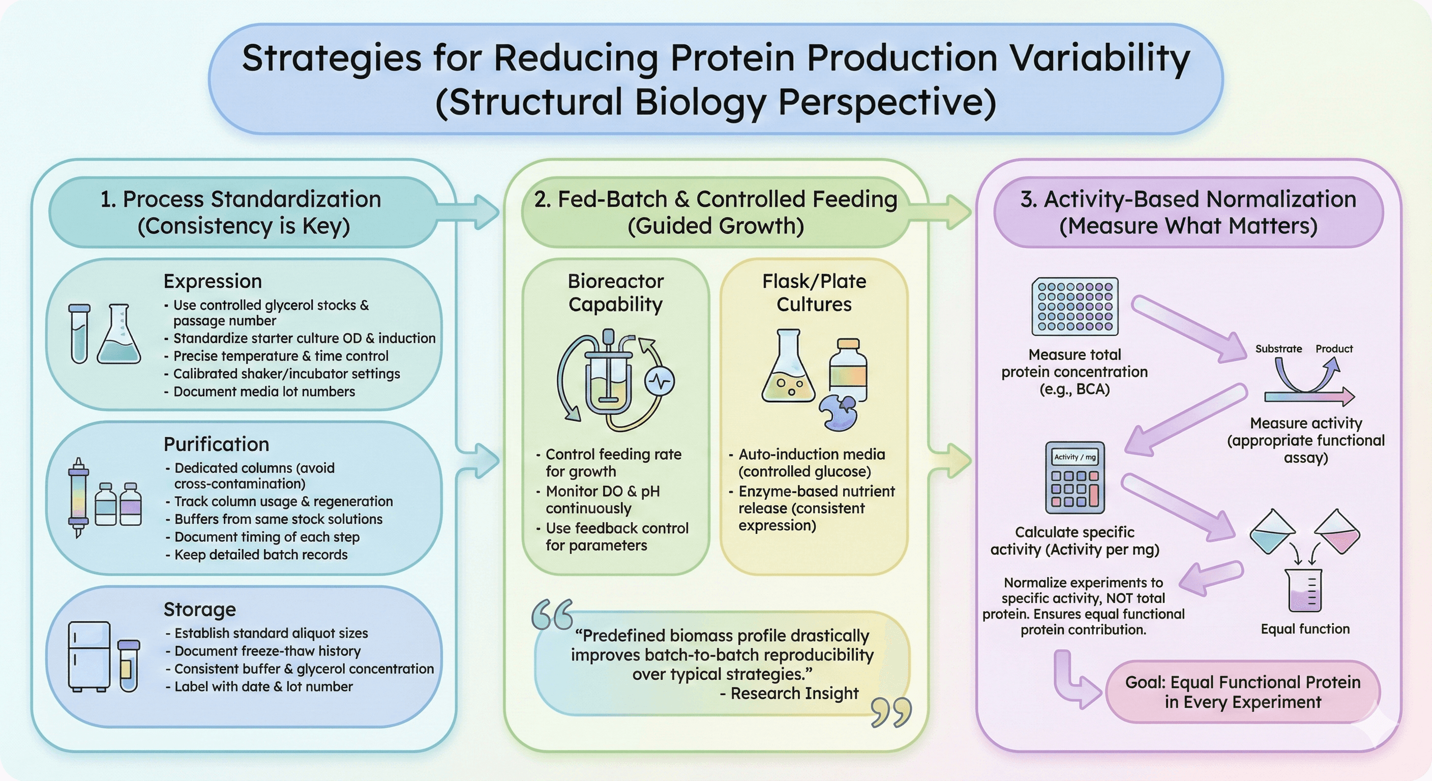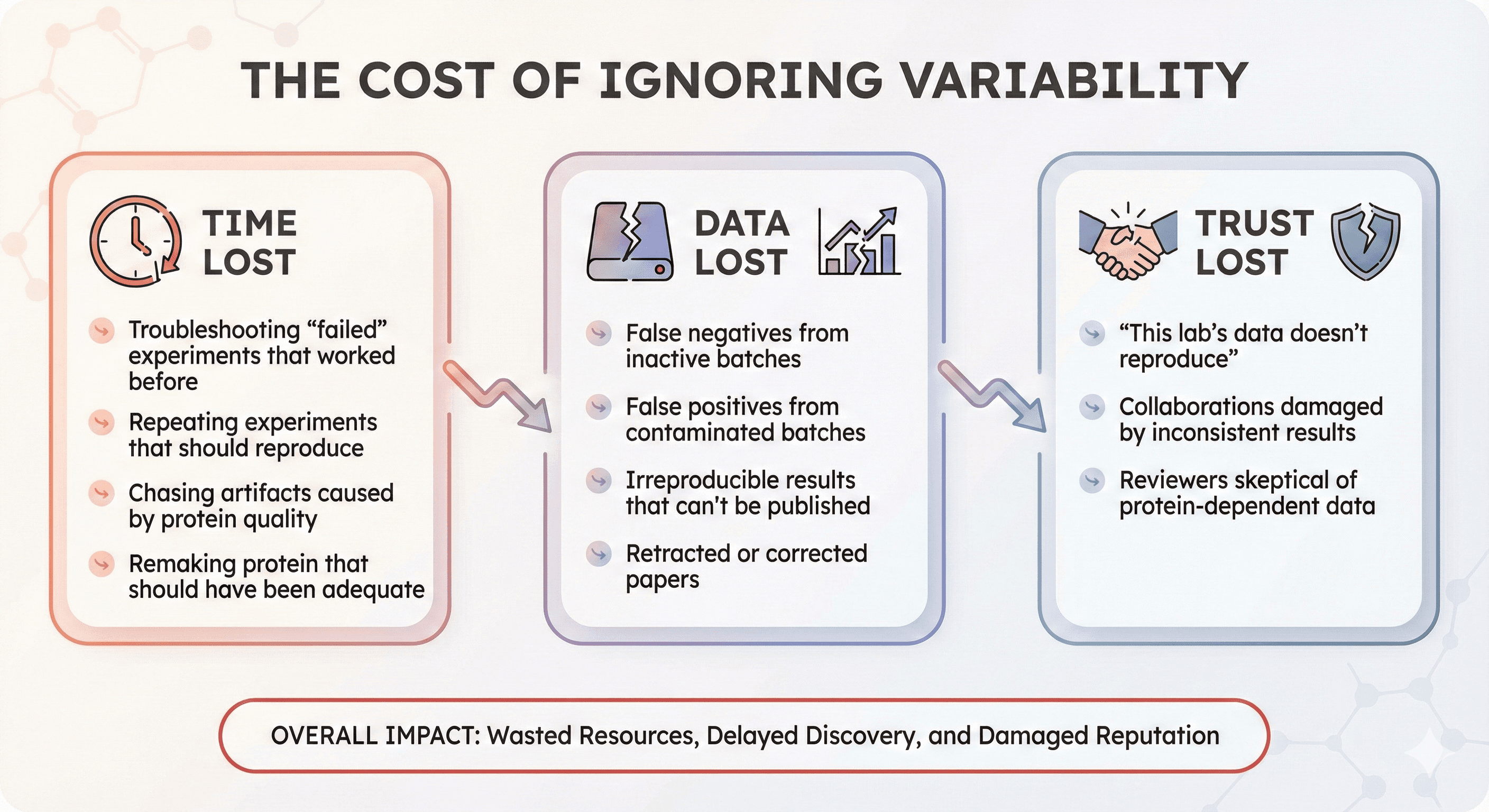 Small changes compound: Minor fluctuations in expression, purification, and storage accumulate into major differences