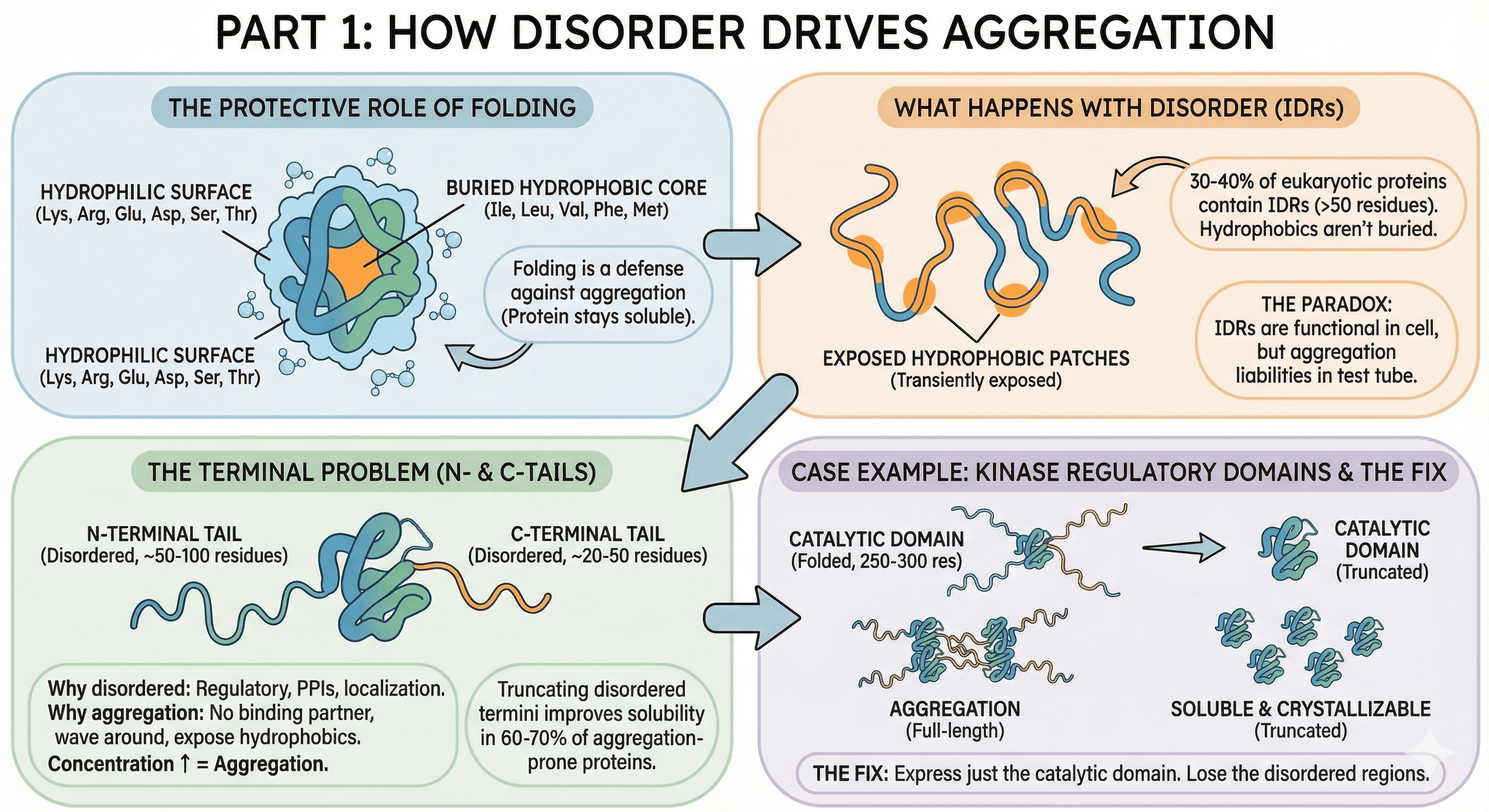The goal is to see the connections between these properties before you start purifying—so you can design constructs that avoid the aggregation trap entirely, rather than troubleshooting it for months afterward.