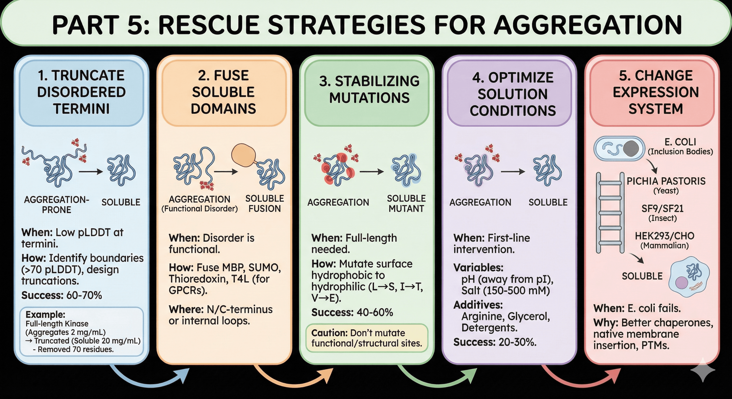 Where to truncate, mutate, or fuse to rescue your protein