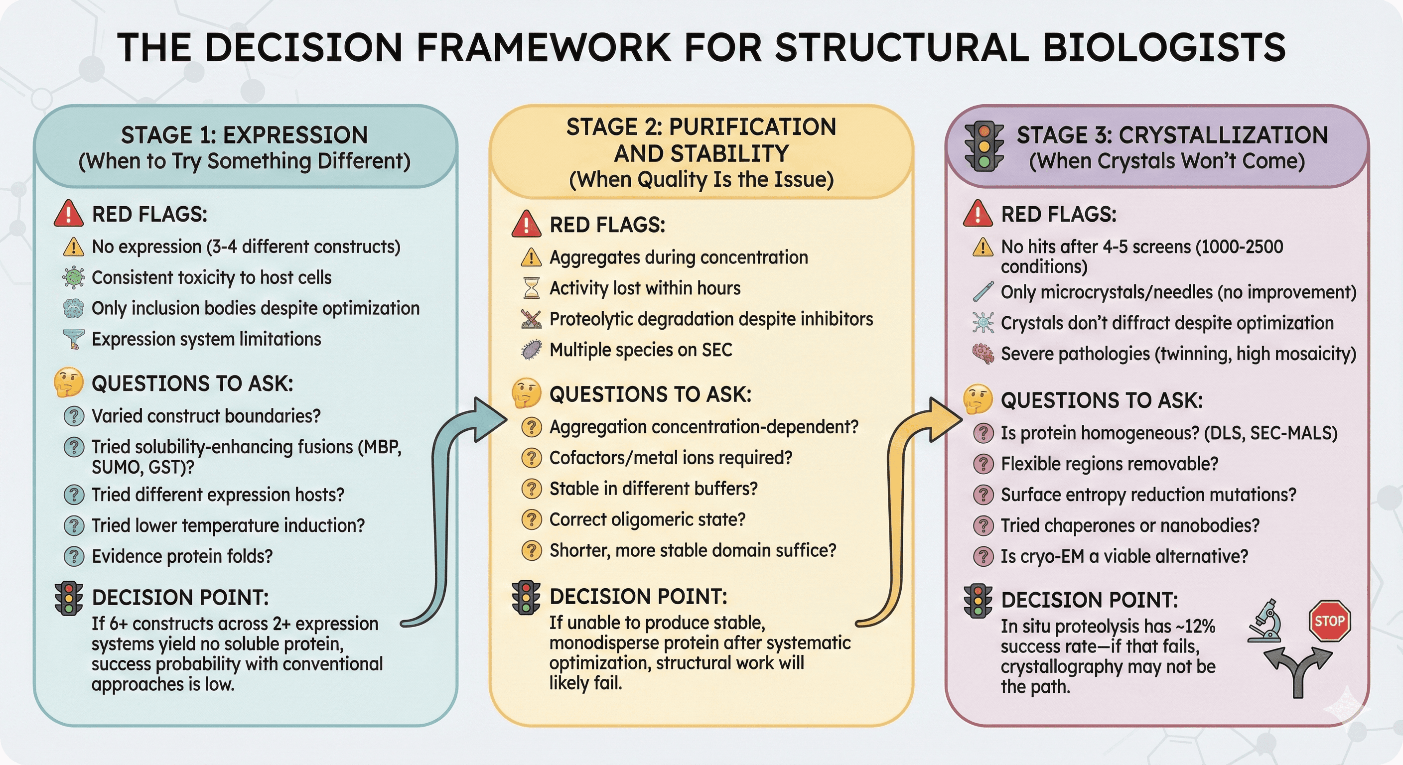 Understanding your protein's challenges before you start helps you choose targets with higher success probability—or at least enter difficult projects with realistic expectations.