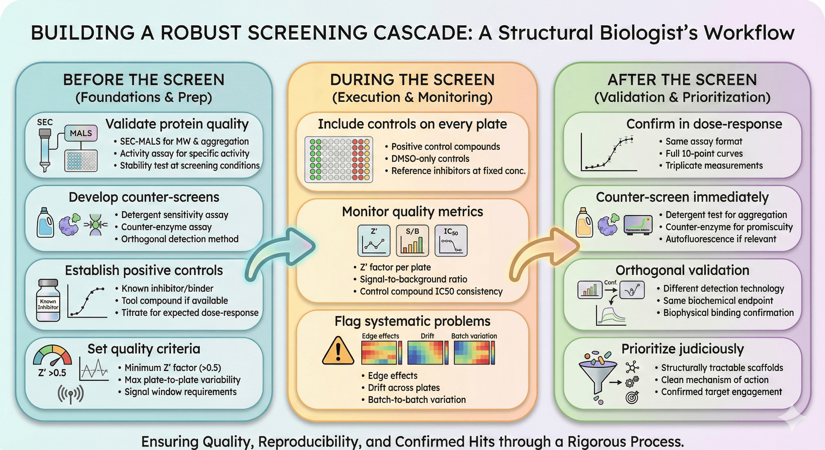 False positives are not failures of the screen—they're expected outcomes that require systematic elimination. The question isn't whether you'll have false positives (you will); it's whether you'll identify them before investing months in medicinal chemistry.
