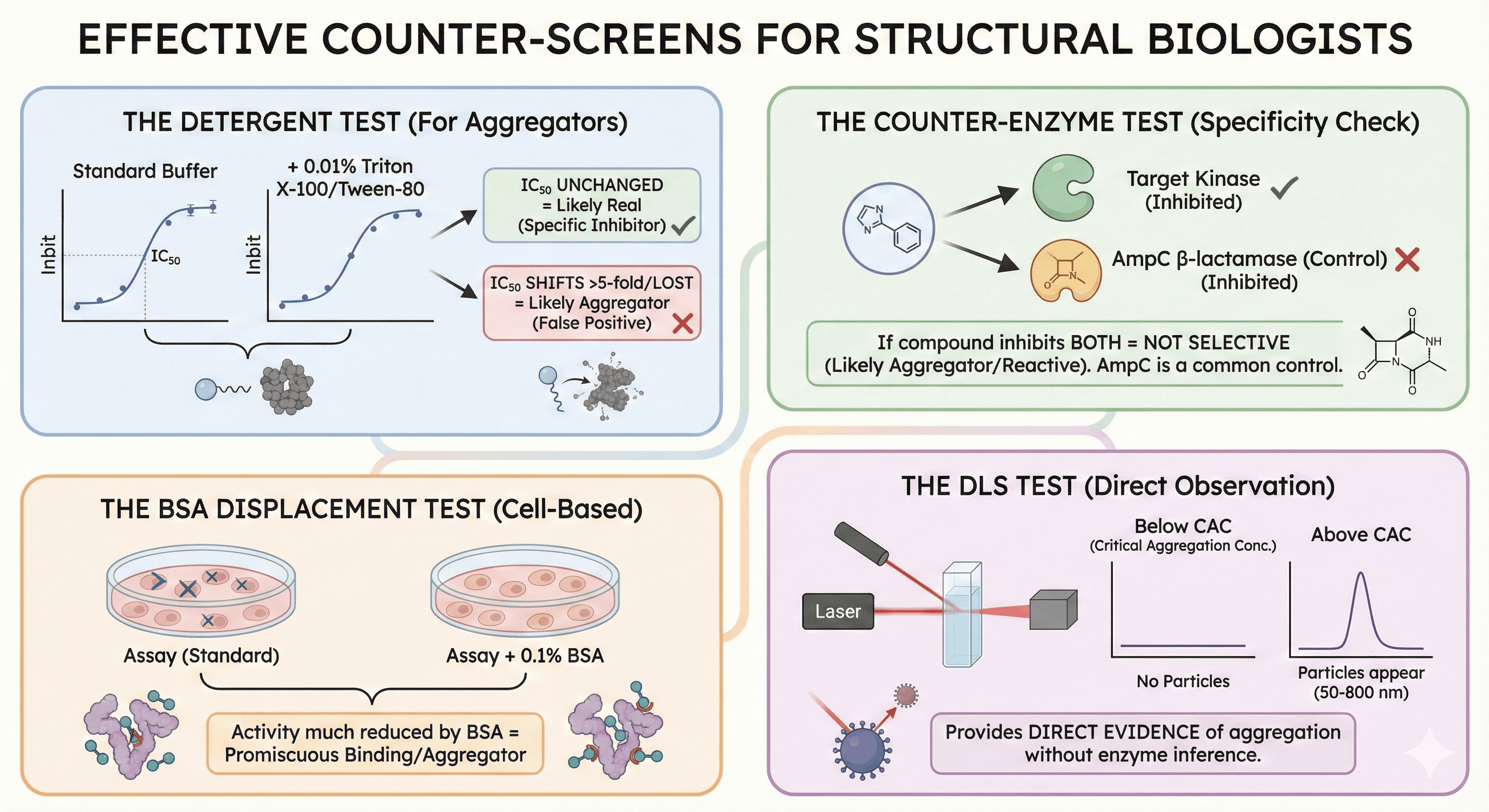 Counter-enzyme susceptibility: Aggregators inhibit unrelated enzymes (e.g., AmpC β-lactamase as a counter-screen)