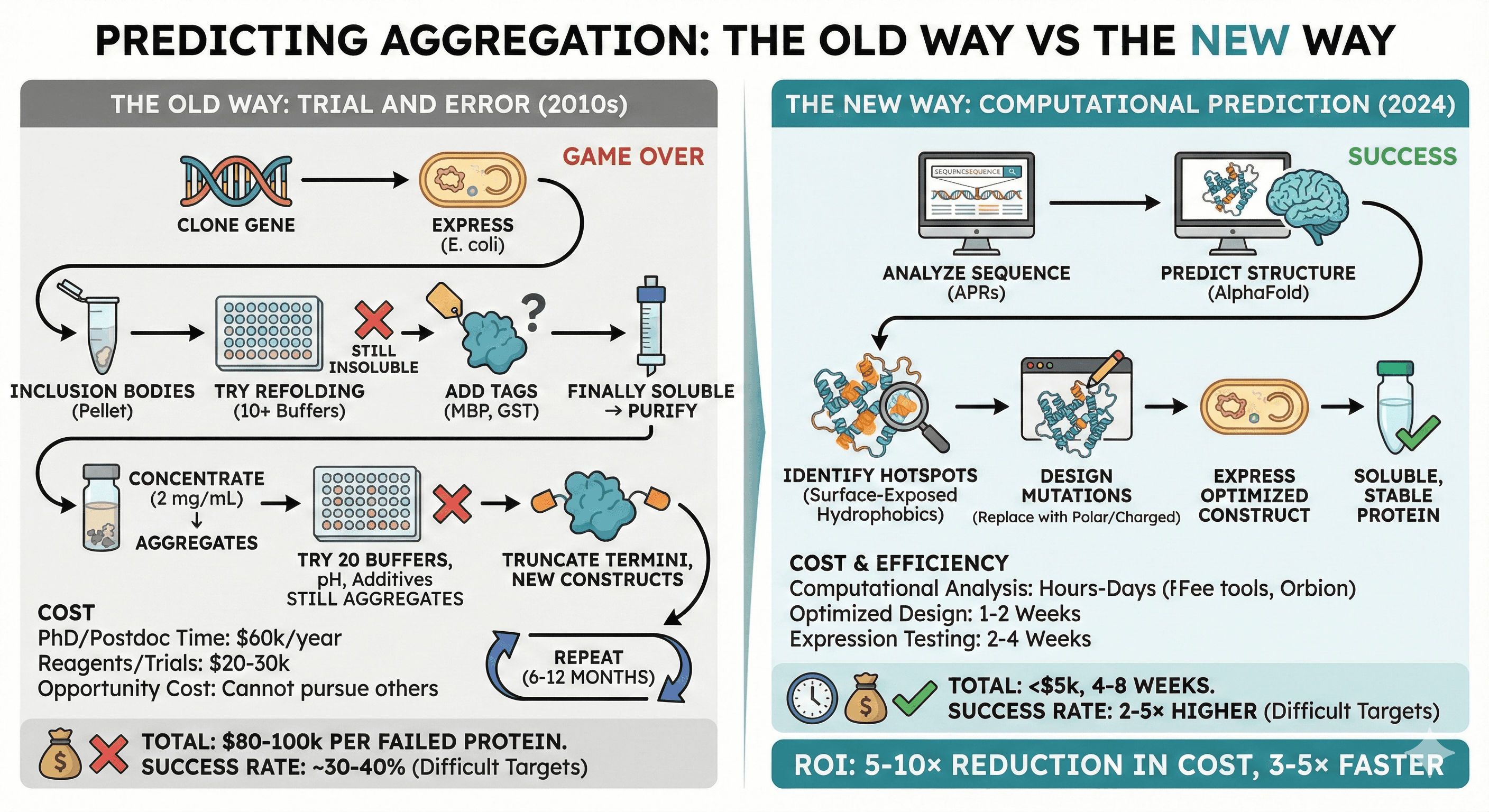 Aggregation used to be the graveyard of protein projects. Today, it's dramatically reduced—if you use the right tools. While not every aggregation problem can be solved computationally, the success rate has improved dramatically, transforming once-intractable targets into achievable goals.